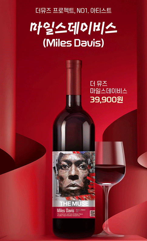 차가운 공기가 창가에 머무는 겨울밤, 재즈 거장 마일스 데이비스(Miles Davis)의 오래된 사운드 사이로 잘 익은 생테밀리옹 와인 한 잔이 숨을 고른다. 지난 세기에 녹음된 트럼펫 선율이 마음을 밀고 당기는 동안, 10년을 견뎌 온 와인의 깊은 풍미가 모든 것을 부드럽게 감싸안는다. 완벽한 이 밤의 마리아주를 주도하는 건 한 병의 ‘더 뮤즈 마일스 데이비스(The Muse Miles Davis)’ 와인. 회화 작가 킬드런이 조합해 낸 생테밀리옹 올빈과 마일스 데이비스의 사운드는 우리를 단숨에 영화 속 한 장면으로 끌어당긴다.