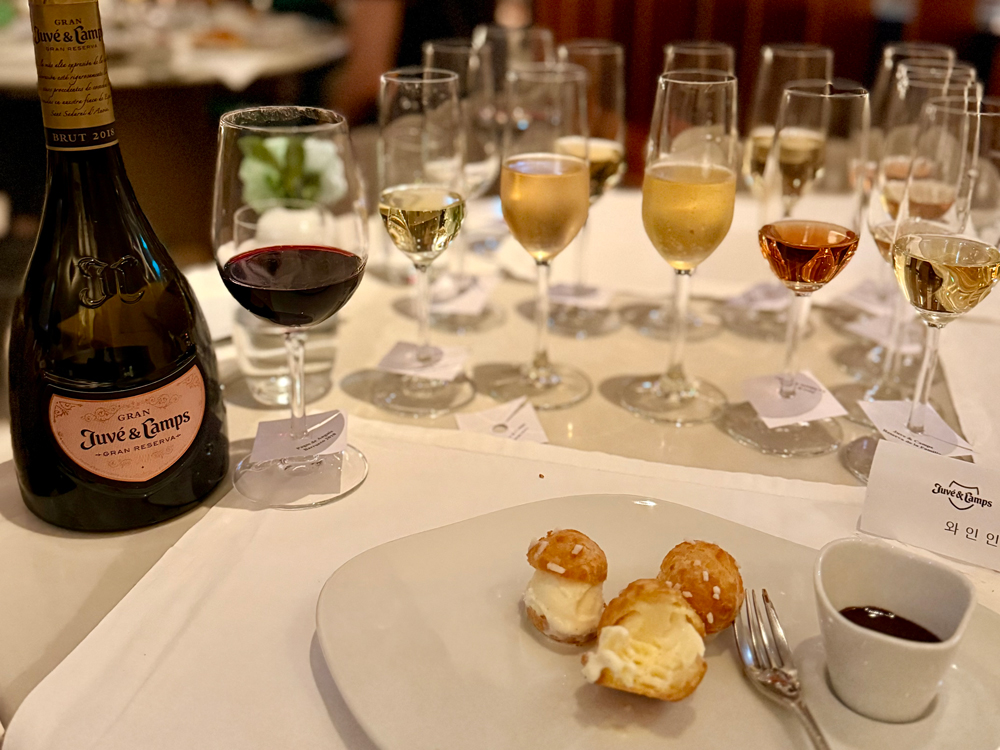 서울 송파의 롯데호텔월드 라운지 바가 하룻밤 ‘페네데스’가 됐다. 국순당이 수입하는 스페인 프리미엄 카바 하우스 후베 이 깜프스(Juvé & Camps)가 방한해 와인 디너를 열고, 브랜드의 철학과 대표 라인업을 음식과 함께 풀어냈다. 결론부터 말하면, 카바는 더 이상 ‘가성비 스파클링’이 아니다. 단순한 축배용 스파클링을 넘어 긴 숙성, 토착 품종의 뼈대, 브뤼 나뚜르(Brut Nature)의 정제된 질감이 미식의 테이블을 지탱하는 ‘가스트로노믹 와인’임을 입증한 자리였다.