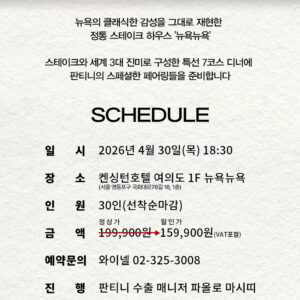 마지막 업데이트 : 2026년 04월 10일 조회수 : 27 판티니 X 켄싱턴호텔 뉴욕뉴욕 00 days | 00 hours | 00 minutes | 00 seconds 이벤트 참가신청 신청 링크: https://naver.me/xJcNupsF SNS로 이벤트 정보 공유하기 previous바타시올로 X 뜨라또리아 로마냐 목록보기다른 이벤트 둘러보기related events