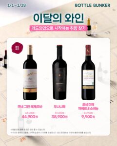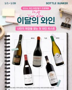 프로모션 기간 : 2026-01-01 ~ 2026-01-31나만의 와인 취향 찾기! 보틀벙커 이달의 와인 기획전혜택 : 와인 11종 할인 판매(~1/28), 20만 원 이상 결제 시 앱 쿠폰 1만 원 할인(~1/31)구매처 : 보틀벙커 참고 보틀벙커 인스타그램 previous와인나라가 준비한 2026 새해 맞이 프로모션 목록보기