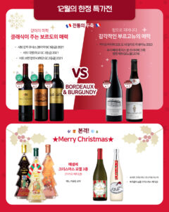 프로모션 기간 : 2025-12-01 ~ 2025-12-31연말의 소중한 순간을 더 빛나게! 12월 와인픽스 P!CK!혜택 : 12월 드레스코드는 ‘레드’ SET, 12월 한정 ‘보르도 VS 부르고뉴’ 특가전, 와인픽스 TOP 10 품목 더블 할인전 등구매처 : 와인픽스 전 매장 참고 와인픽스 블로그 next12월 샴페인 특가! 월화수 20%, 목금토일 25% OFF 목록보기
