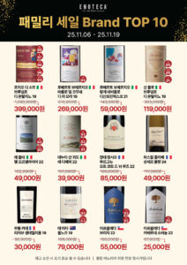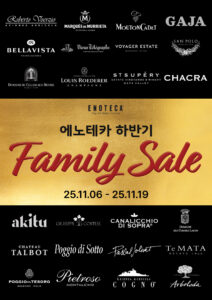 프로모션 기간 : 2025-11-06 ~ 2025-11-19올해 단 한 번, 에노테카 하반기 패밀리 세일혜택 : 11월, 단 한 번의 프리미엄 와인 프로모션! Brand TOP 10 최대 70% OFF, 제임스 서클링 93점, 96점 이상의 와인 한정 수량 할인전 등구매처 : 에노테카 직영샵 참고 에노테카코리아 홈페이지 previous‘DIVE INTO BUBBLE: 제이콥스 크릭에 빠지다!’ 프로모션 next2025 맥라렌 X 잭다니엘스 한정판 위스키, 편의점 업계 단독 프로모션 목록보기