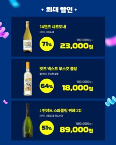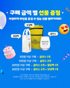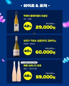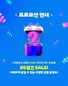 프로모션 기간 : 2026-01-05 ~ 2026-01-30와인나라가 준비한 2026 새해 맞이 프로모션혜택 : 화이트 와인•샴페인•스파클링 와인 특별가, 와인나라 카카오톡 플러스 친구 추가 후 전용 링크 내 구매 가능구매처 : 와인나라 온라인몰 참고 와인나라 인스타그램 / 와인나라 카카오톡 채널 previous와인앤모어 MD가 직접 고른 1월 새해 추천 와인 next나만의 와인 취향 찾기! 보틀벙커 이달의 와인 기획전 목록보기