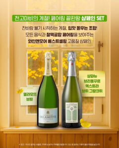 프로모션 기간 : 2025-10-01 ~ 2025-10-29와인앤모어가 엄선한 10월 베스트 셀렉션혜택 : 신&구 대표 화이트 와인 SET, 페어링 끝판왕 샴페인 SET, 칠레 베스트 듀오 SET 외 이달의 브랜드 투핸즈 기획 세트 3종 출시구매처 : 와인앤모어 참고 와인앤모어 인스타그램 previous깊어가는 가을, 10월 와인픽스 PICK 목록보기