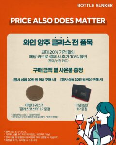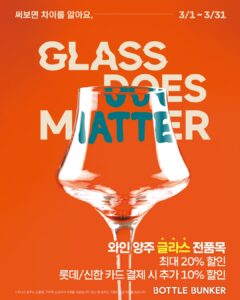 혜택 : 와인·양주 글라스 전 품목 최대 20% 할인, 행사 카드 결제 시 추가 10% 할인, 구매 금액 별 사은품 증정 등