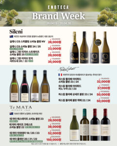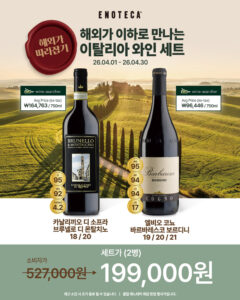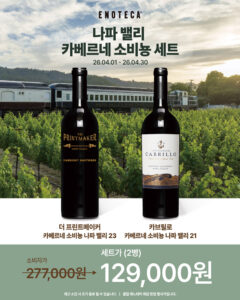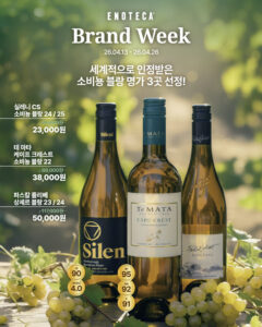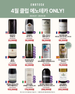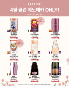 프로모션 기간 : 2026-04-01 ~ 2026-04-30햇살과 함께하는 계절, 로제 & 스파클링 와인 중심의 셀렉션혜택 : 로제·스파클링 와인 할인 판매, 소비뇽 블랑 명가 브랜드 위크, 해외가 이하로 만나는 이탈리아 와인 세트 등 구매처 : 에노테카 직영샵 참고 에노테카 홈페이지 next총 87종 와인 & 샴페인 총집합! 최대 30% 할인전 목록보기